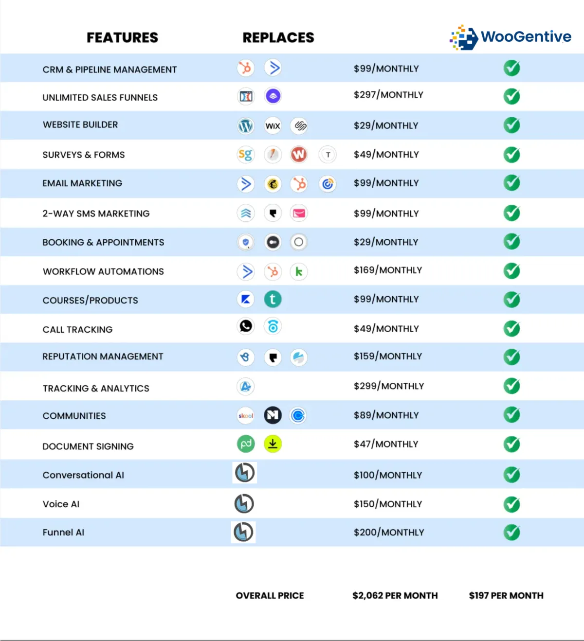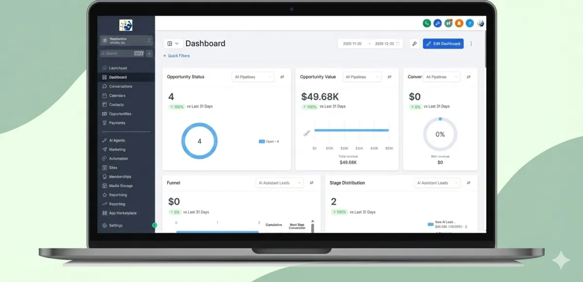 WooGentive runs on HighLevel's software, but we go far beyond their base platform. We've customized it for businesses and consultants with ready to launch templates, funnels and automations, plus built in messaging credits and strategic technical support so you focus on growing your business, we will handle the tech. Think of WooGentive as HighLevel, just tailored and set up for your business out of the box, with a backend tech team behind your business.